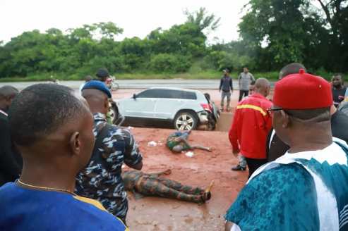 Sir Onyeme was on his way for an assignment at Kwale when he met the accident scene and despite the rain, he moved to the scene of the accident.