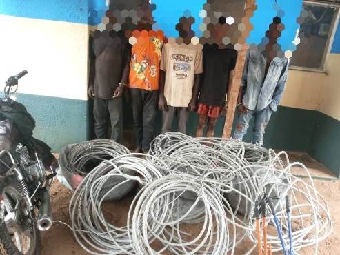 Consequently, on 5/8/2023, the divisional crime officer led a combined team of police and vigilante and arrested the following suspects, Michael Thankgod, Peter Onyoba from Anambra state, Prince Johnson Ogochukwu and Nwabochali , Chinedu Ossai and recovered three sacks containing electric conductor cable wires, two iron steel cutter, one measuring scale.