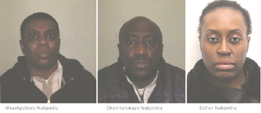 At Woolwich Crown Court, Unuakpotovo Nakpodia has been jailed for seven years and seven months; Okemiorukaye Nakpodia has been jailed for six years and six months, while Esther Nakpodia has been sentenced to two years and six months in prison.